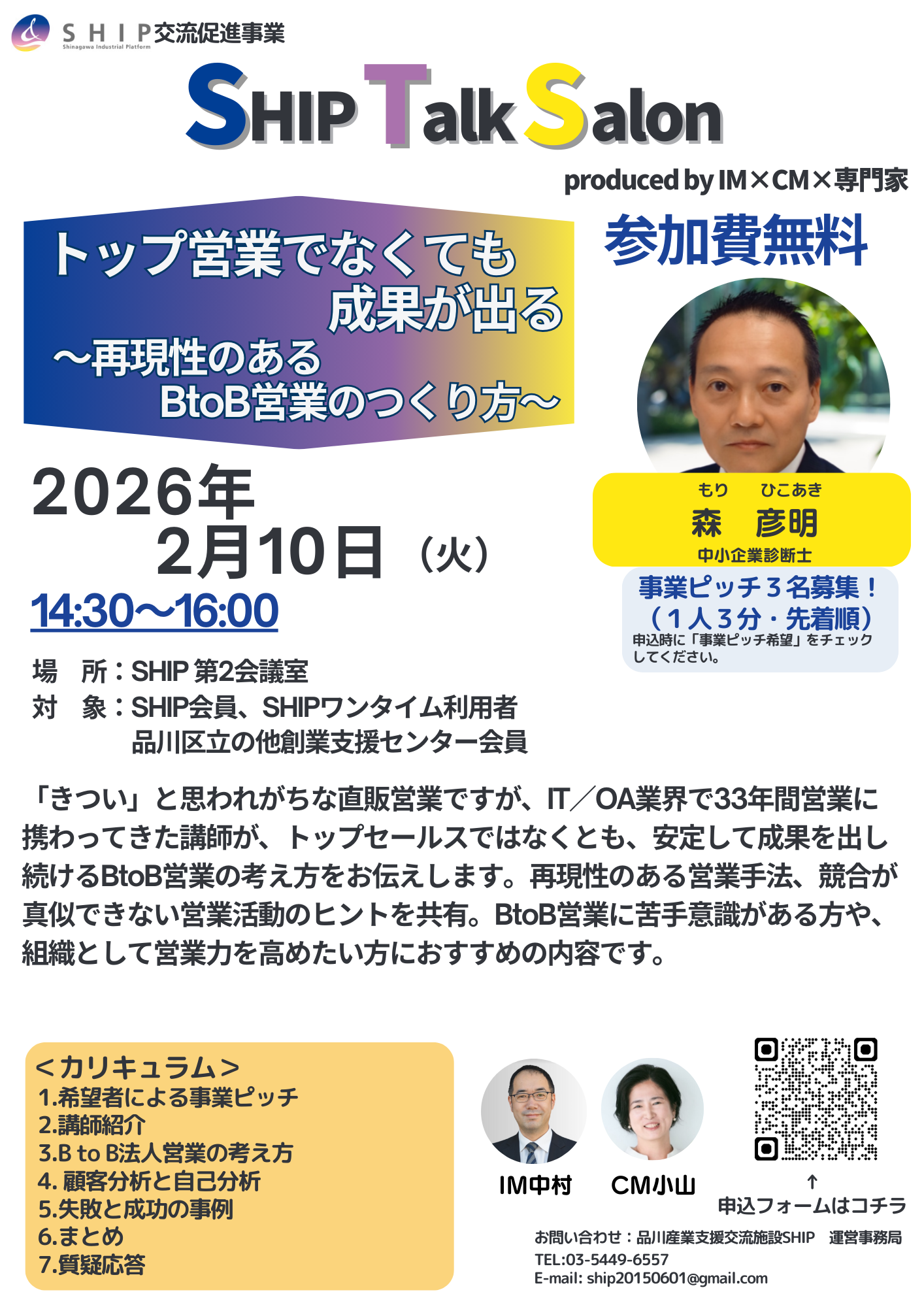 2026年2月のSHIP Talk Salonは「トップ営業でなくても成果が出る ~再現性のあるBtoB営業のつくり方~ 」をテーマに開催します。