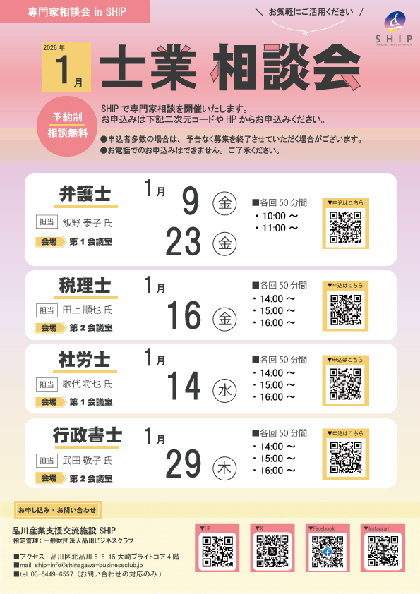 ※SHIPの士業相談会は、事業者、起業を目指す方のための専門家による相談会です※