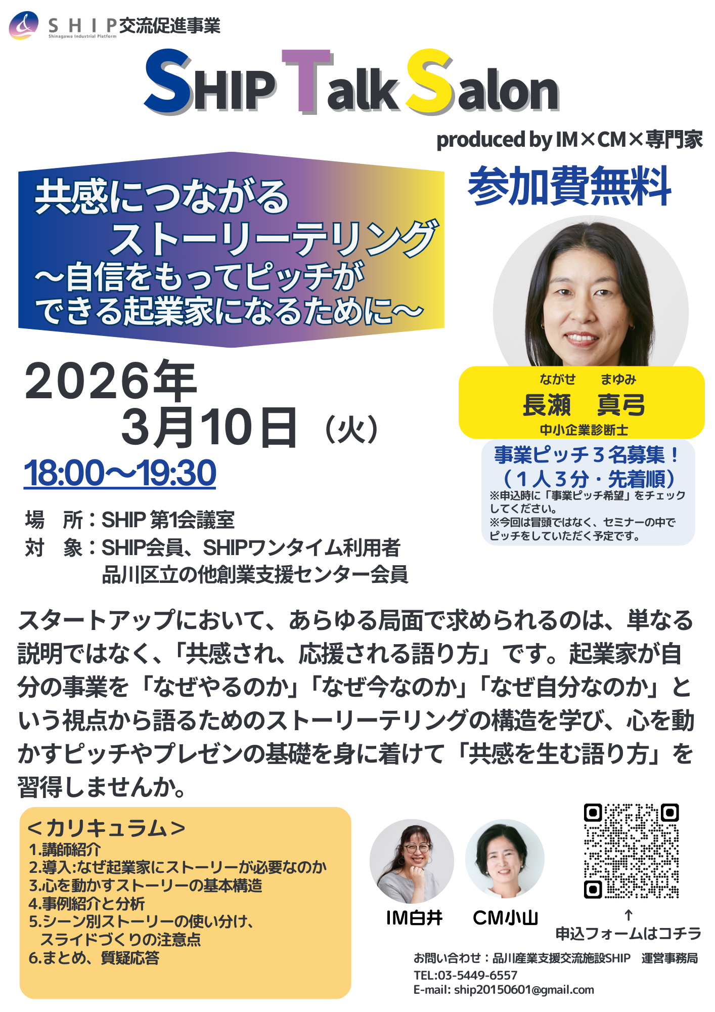 2026年3月のSHIP Talk Salonは「共感につながるストーリーテリング~自信をもってピッチができる起業家になるために~ 」をテーマに開催します。