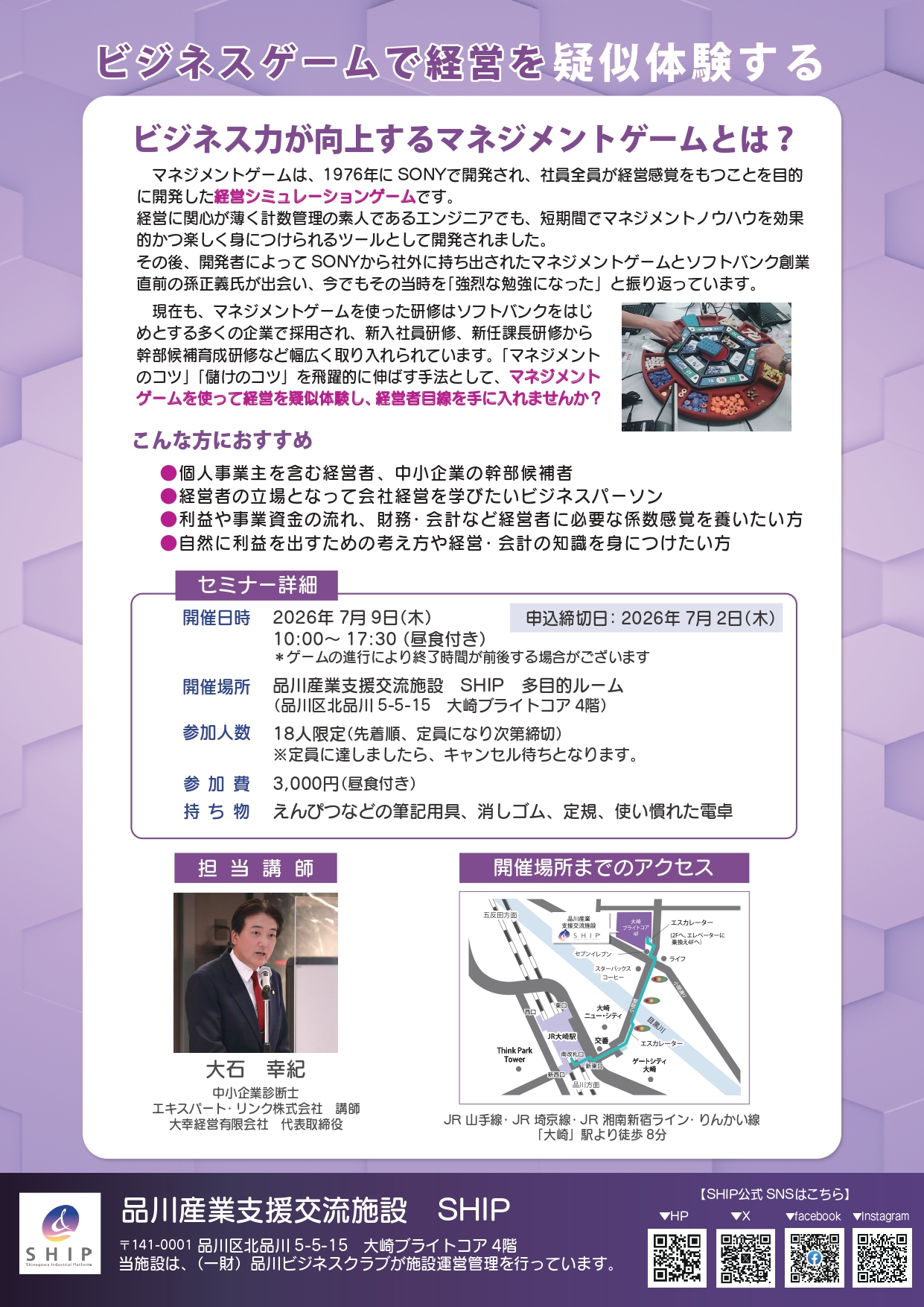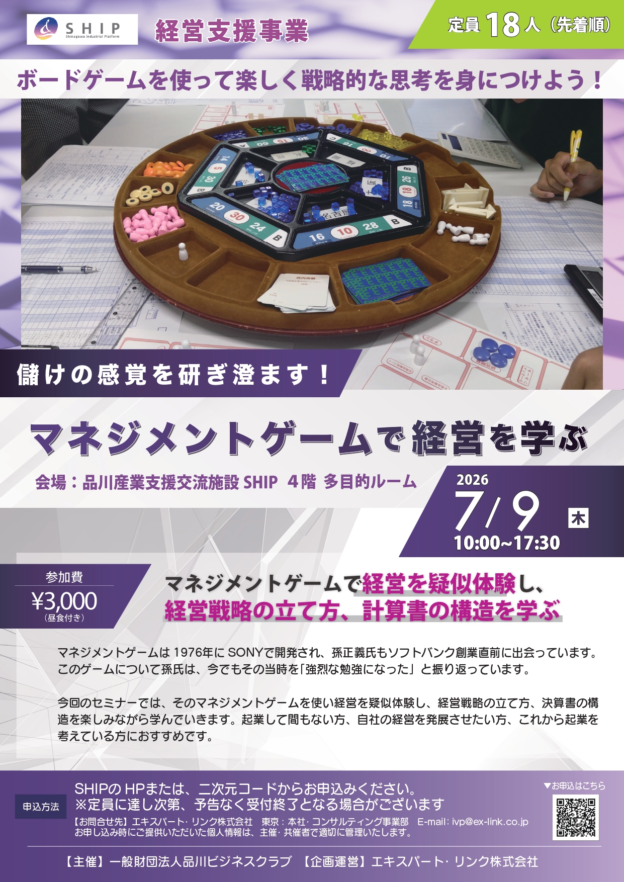 本イベントは、マネジメントゲームを使って経営を疑似体験し、経営戦略の立て方、決算書の構造を学び、マネジメントのノウハウを身につけていくイベントとなります。